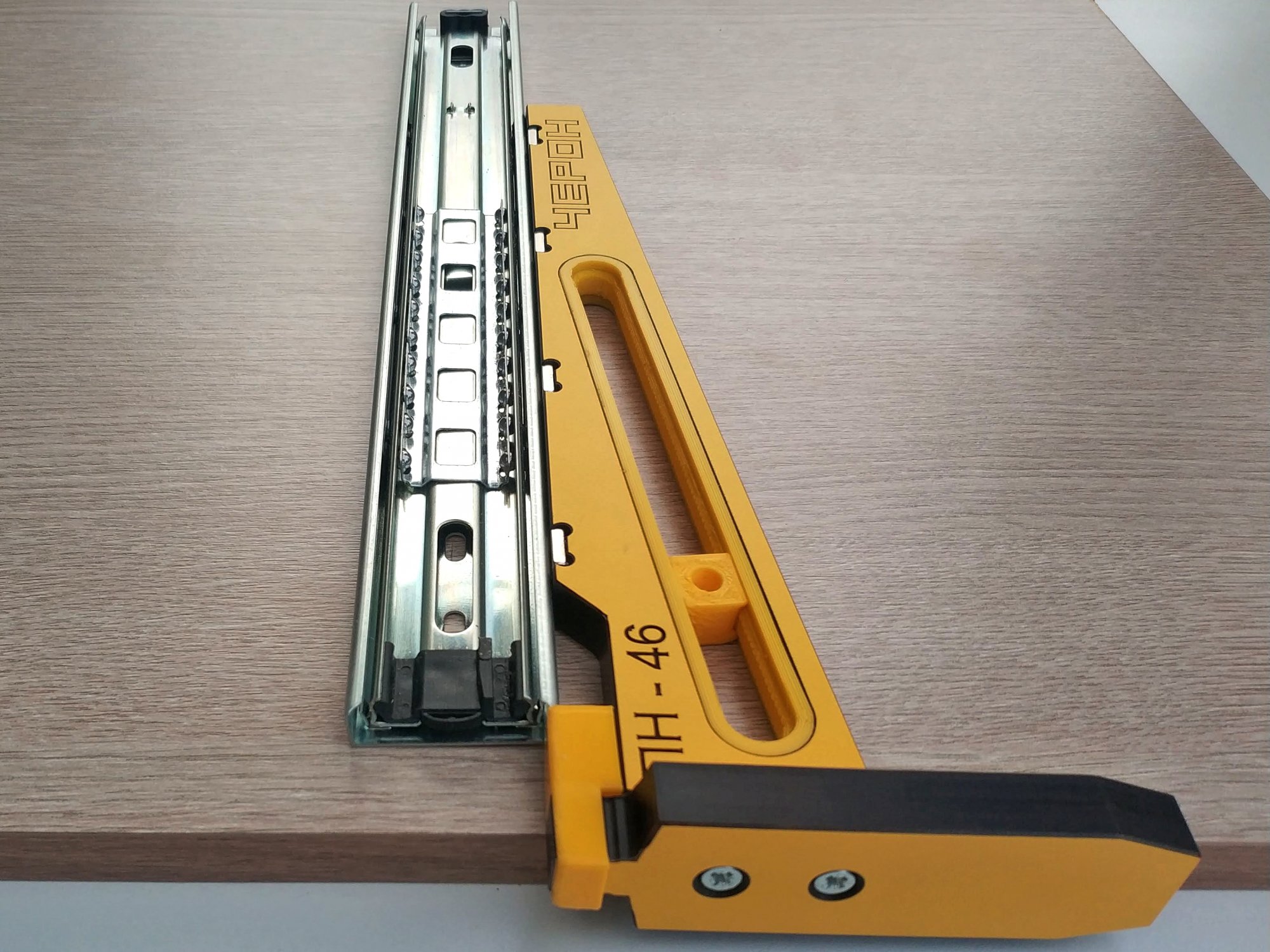 Устройство служит для установки всех (шариковых, роликовых и т.д.) видов мебельных направляющих.