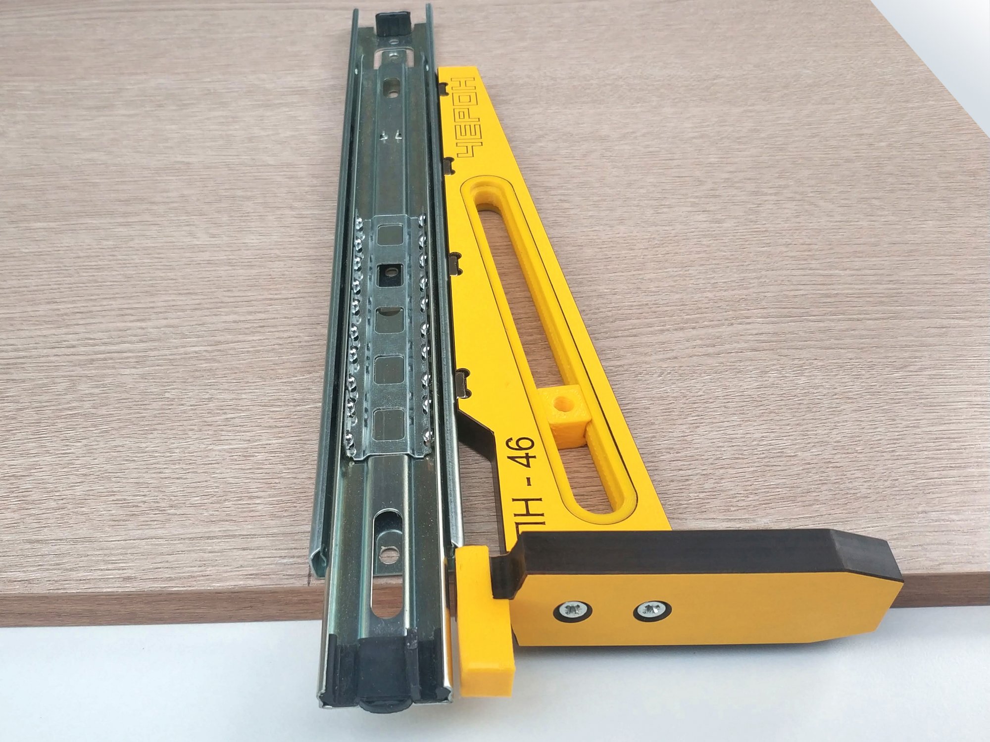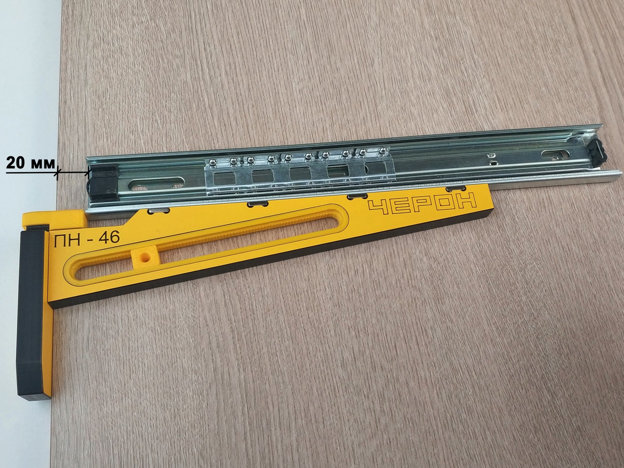 Приспособление для всех видов направляющих ПН-46 – это полностью российская разработка компании ЧЕРОН. Шаблон разработан как аналог более дорогим устройствам зарубежного производства, чтобы еще больше мебельщиков смогли выполнять эту задачу, при этом не переплачивая за западный бренд.