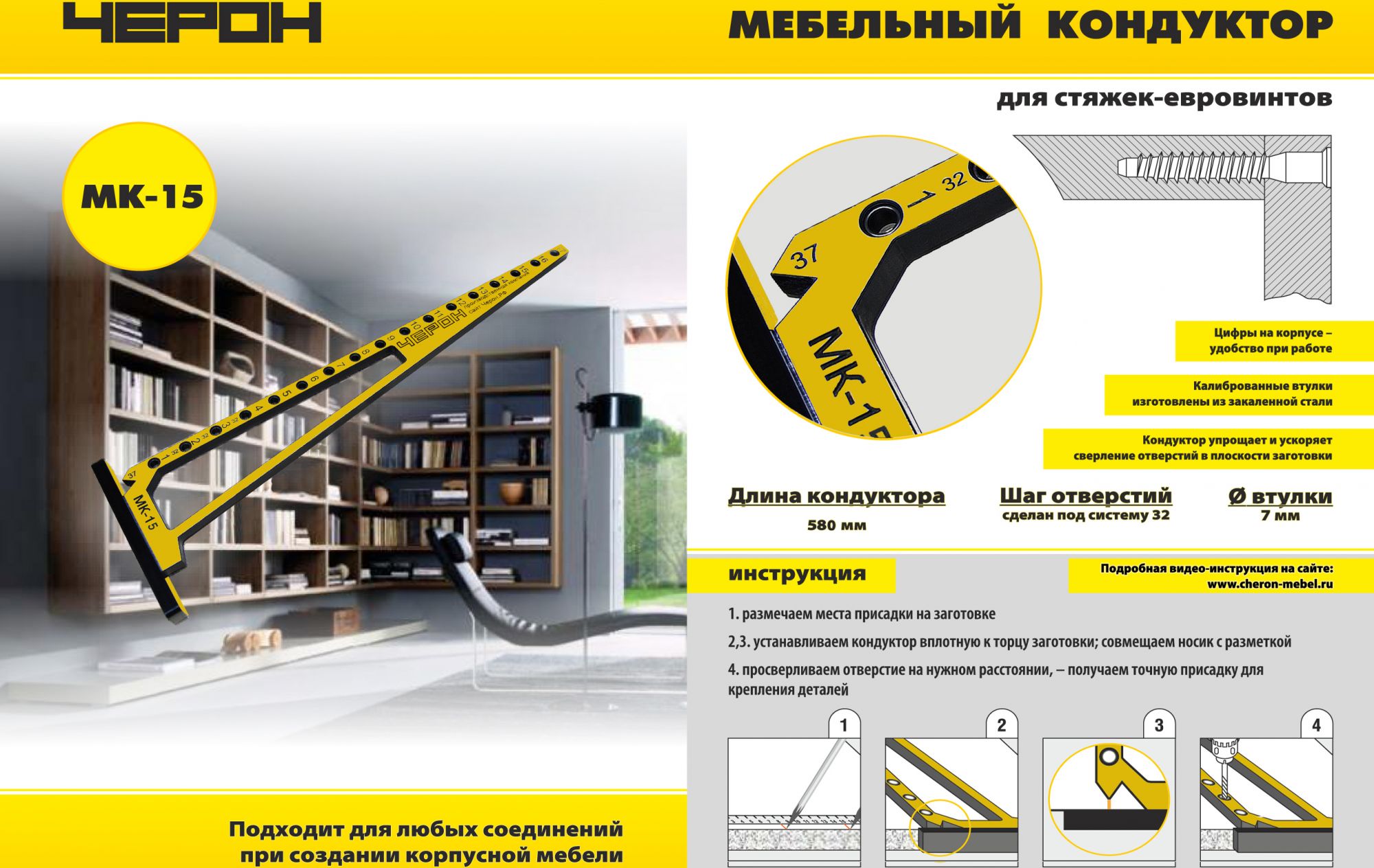 - Мебельный кондуктор угольник МК-15 предназначен для сверления отверстий 7 мм в плоскость плиты 16 мм с шагом отверстий 32 мм. (можно сверлить плиты и другой толщины с использованием переходников)