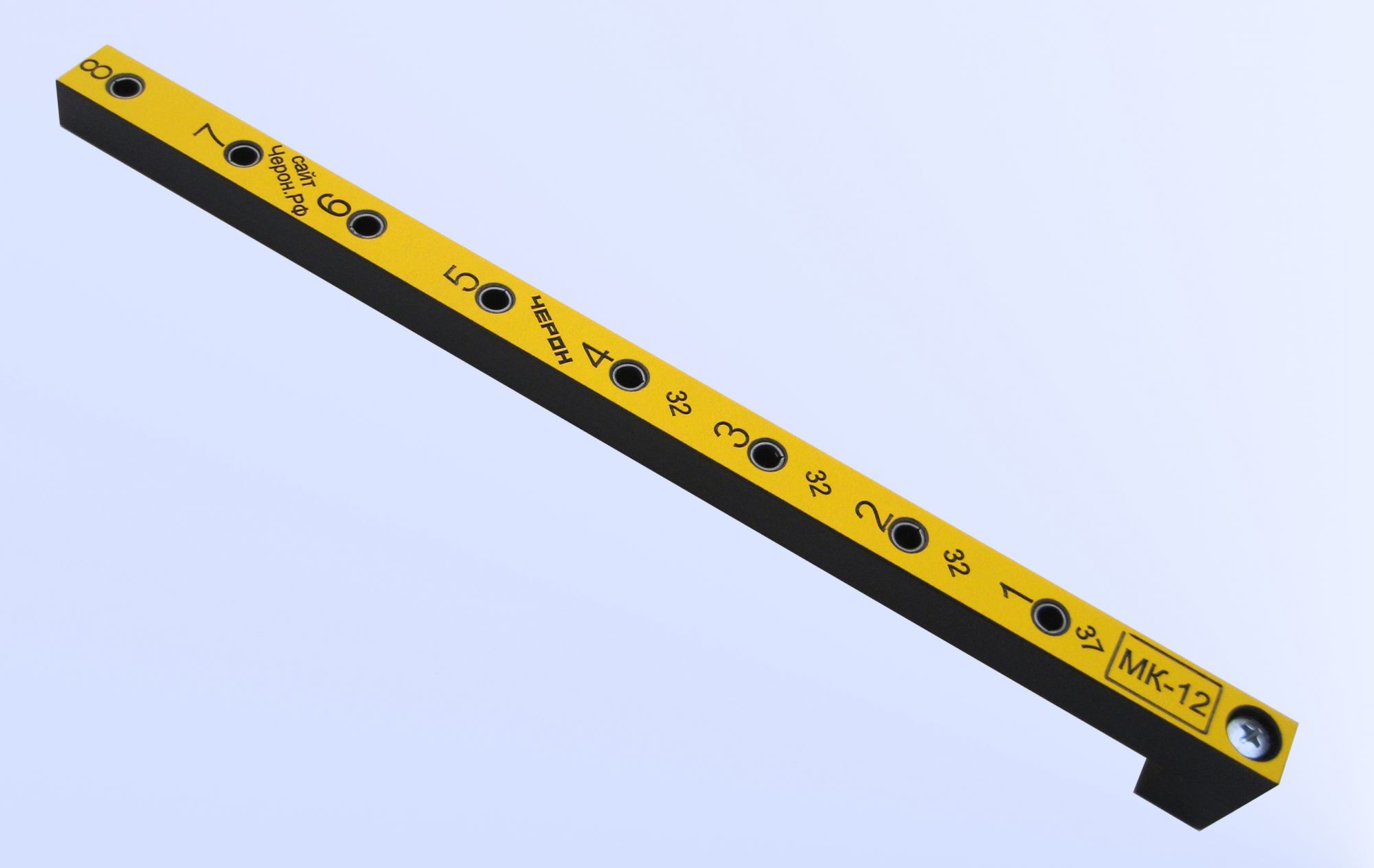 - Мебельный кондуктор укороченный МК-12 предназначен для сверления отверстий 5 мм в торце плиты 16 мм с шагом отверстий 32 мм. (можно сверлить плиты и другой толщины с использованием переходников)