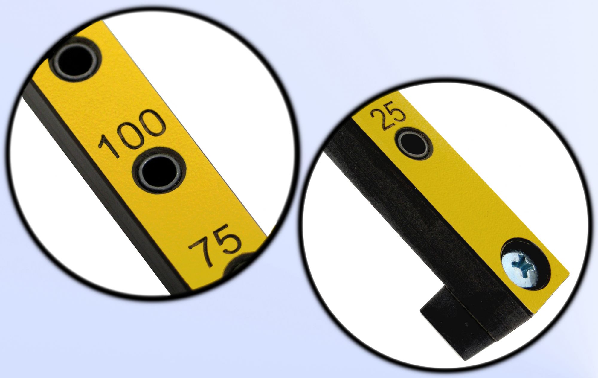 Мебельный кондуктор торцевой шаг 25/50, диаметр втулки 5 мм, под плиту 16 мм.