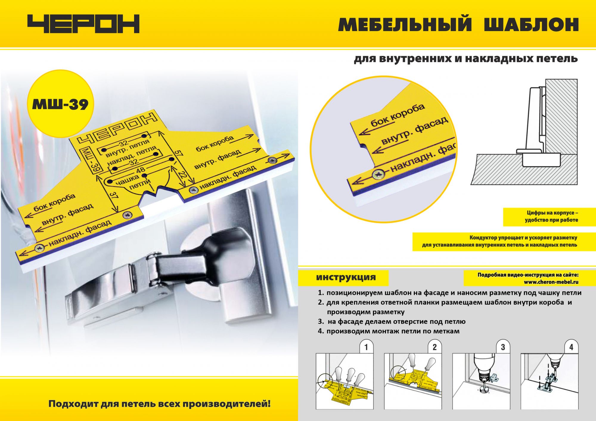 Мебельный шаблон для внутренних и накладных петель арт.МШ-39