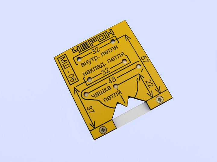Шаблон для мебельных петель, внутренних и накладных, с чашкой 35 мм арт.МШ-06