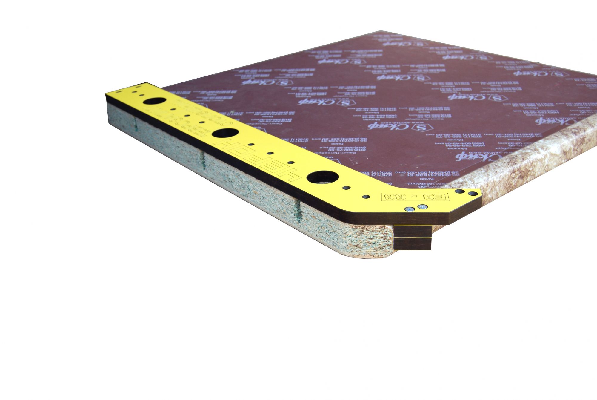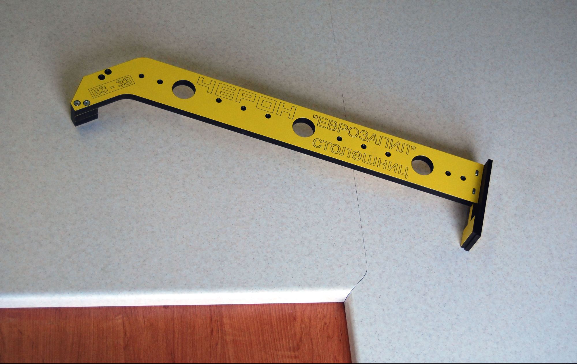 Шаблон ЕЗ-33 служит для фрезеровки стыка рабочих поверхностей столешниц, под так называемый "Еврозапил" (беcшовное соединение столешниц)