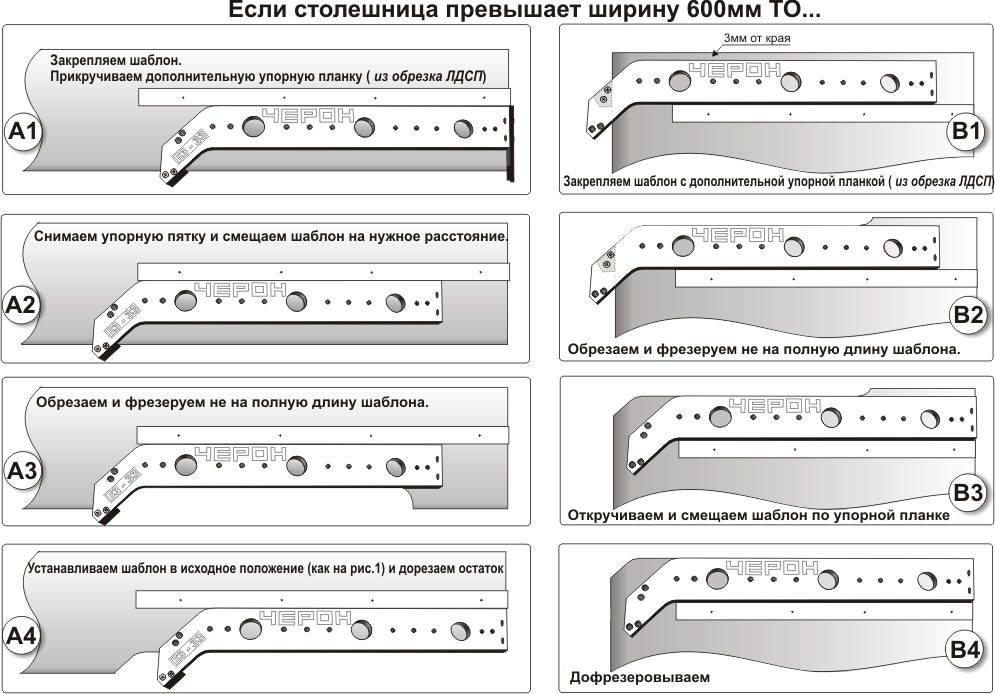 Шаблон для "еврозапила" столешниц, шириной от 600 до 1300мм арт.ЕЗ-33