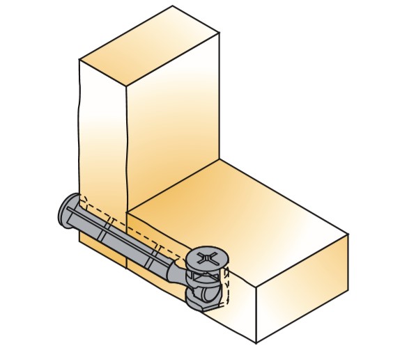 Концевой дюбель с выступающей шляпкой. Общая длина 50,5 мм. Можно использовать со всеми эксцентриками Cam2000 и Cam3000 (Ø12мм и Ø15мм).