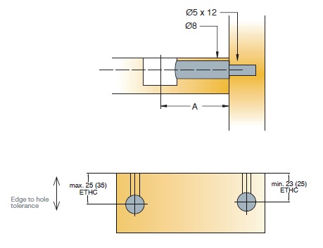 - допуски на сверление: +/-1мм
