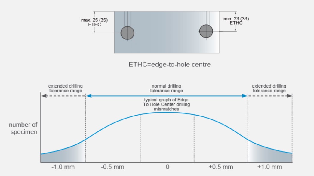 - допуски на сверление: +/-1мм