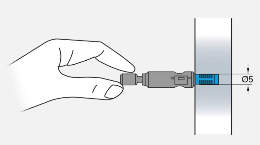 - диаметр сверления для резьбы дюбеля: 5 мм;