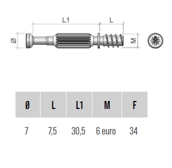 Дюбель стяжной М6 euro D7х41,5 мм l=34, цинк арт.TE33FZ