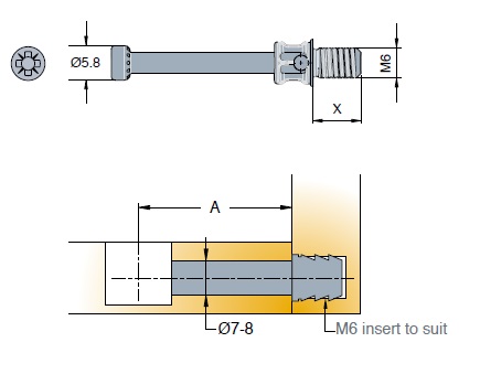 - глубина сверления для резьбовой части дюбеля 8 мм;