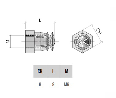 Муфта М6 8х9 мм без шарика латунь арт.BU55OL