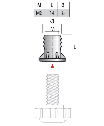 Футорка для опоры D8 М6х14 мм (цинк) арт.BP01FZ