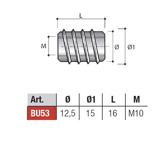Футорка М10х16 мм (цинк) арт.BU53ZL