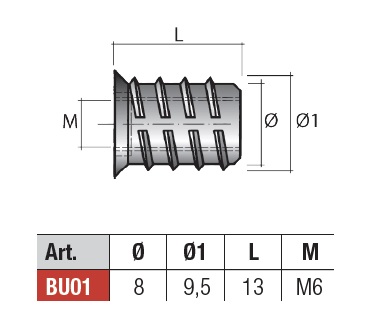 Футорка М6х13 мм (цинк без покрытия) арт.BU01ZL