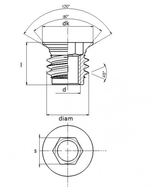 Резьба внешняя, мм
