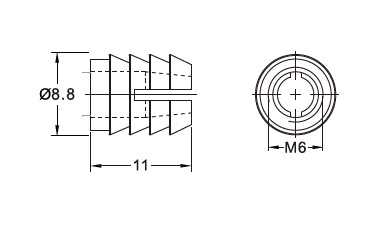 Футорка серии 153, M6, 12х8мм, пластик арт.153-BU61-1108-WH