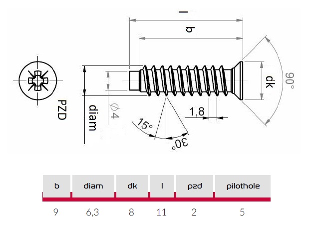Евровинт 6,3х11, цинк арт.422A063011Z