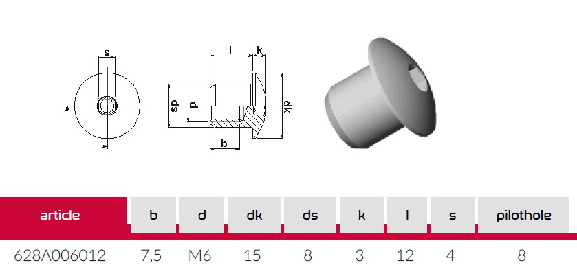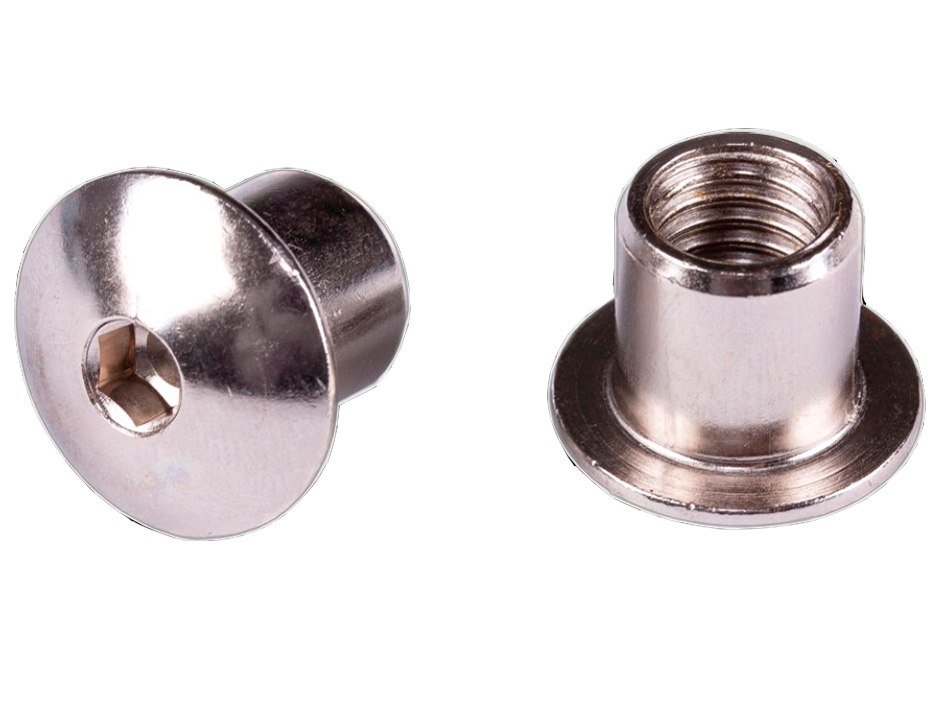Гайку можно использовать в сочетании с другой деталью с аналогичной геометрией шляпки. При затягивании образует соединение, где материал зажат между двумя шляпками.