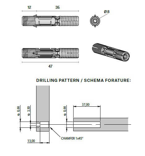 Стяжка мебельная d8х47 мм арт.CIKO010000008