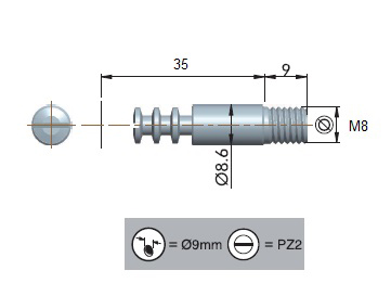 Болт для эксцентрика с длинным ходом затяжки 35мм, М8 арт.172-106201-Z
