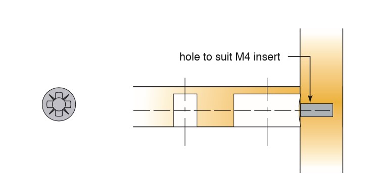 Дюбель для эксцентрика с метрической резьбой М4. Имеет фланец для ограничения глубины вкручивания. Фиксация с "защелкиванием" обеспечивает прочное, виброустойчивое соединение.