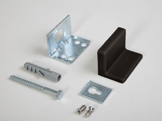 Универсальный мебельный навес с возможностью регулировки по высоте — 10 мм и боковой регулировке — 7 мм. Навес используется для подвешивания и выравнивания корпусов мебели. Рассчитан для нагрузки до 40 кг. Материалы: пластик, металл. Навес укомплектован евровинтами (2 шт), шурупом DIN 571 6х70, дюбелем 10х50.