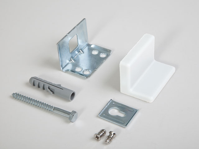 Универсальный мебельный навес с возможностью регулировки по высоте — 10 мм и боковой регулировке — 7 мм. Навес используется для подвешивания и выравнивания корпусов мебели. Рассчитан для нагрузки до 40 кг. Материалы: пластик, металл. Навес укомплектован евровинтами (2 шт), шурупом DIN 571 6х70, дюбелем 10х50.