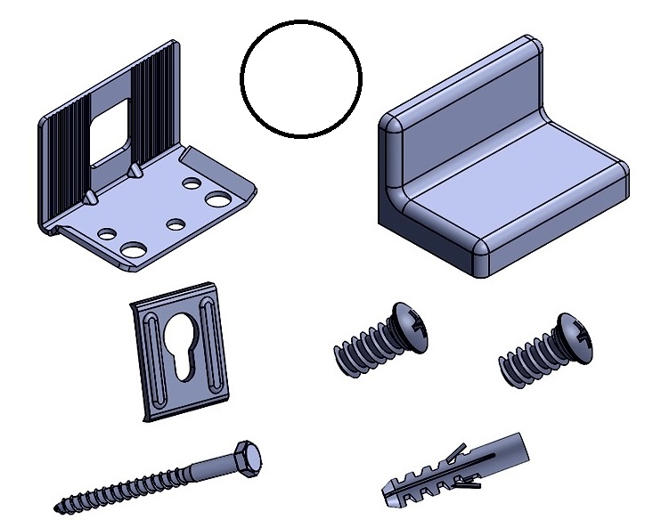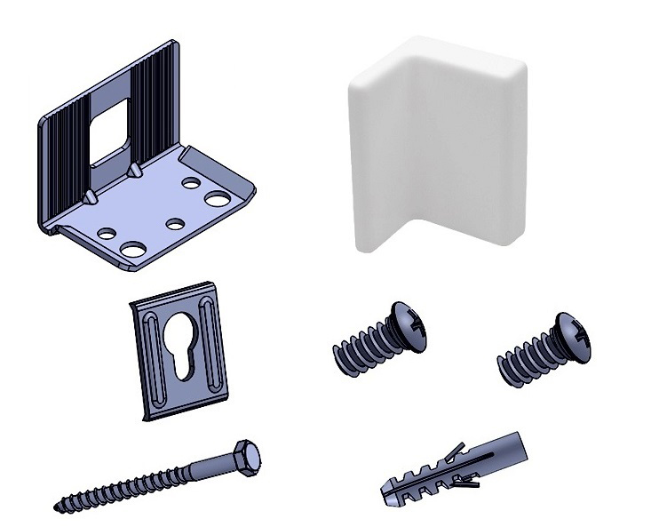 Универсальный мебельный навес с возможностью регулировки по высоте — 10 мм и боковой регулировке — 7 мм. Навес используется для подвешивания и выравнивания корпусов мебели. Рассчитан для нагрузки до 40 кг. Материалы: пластик, металл. Навес укомплектован евровинтами (2 шт), шурупом DIN 571 6х70, дюбелем 10х50.