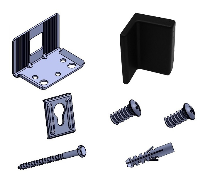 Универсальный мебельный навес с возможностью регулировки по высоте — 10 мм и боковой регулировке — 7 мм. Навес используется для подвешивания и выравнивания корпусов мебели. Рассчитан для нагрузки до 40 кг. Материалы: пластик, металл. Навес укомплектован евровинтами (2 шт), шурупом DIN 571 6х70, дюбелем 10х50.