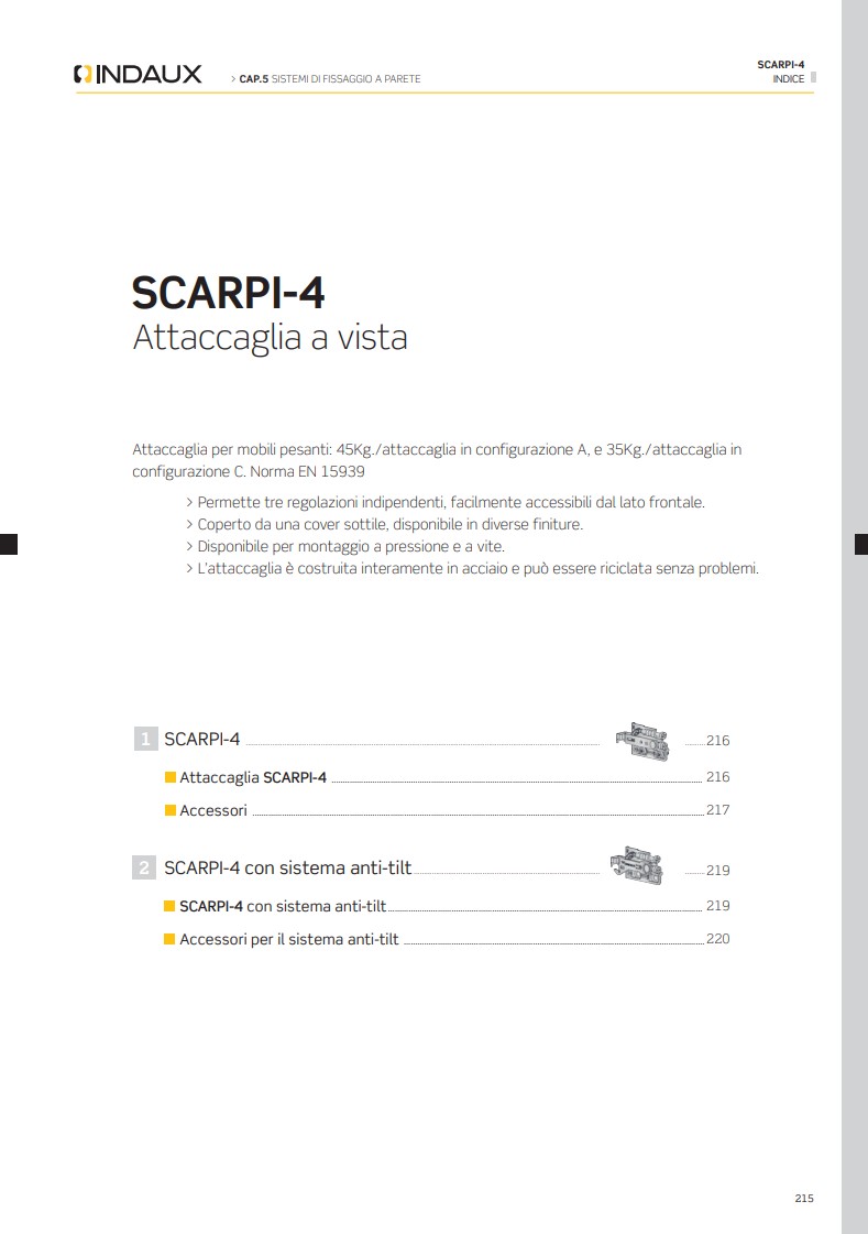 Навески Scarpi-4 представляют собой высококачественную мебельную фурнитуру, предназначенную для крепления корпусной мебели к стенам. Они разработаны компанией INDAUX, известным брендом из Испании, который специализируется на производстве надежных и эстетически привлекательных решений для мебели. Scarpi-4 сочетают функциональность, безопасность и современный дизайн, что делает их популярными среди мастеров и конечных пользователей.