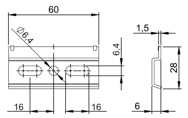Шина для навесов 60х6х28 мм арт.258.6000.40