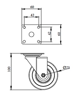Опора колесная D75 мм с пластиной 60*60 мм арт.1023.072.VB