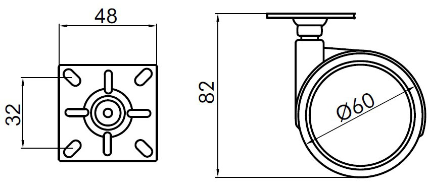 Опора колесная D60 мм с пластиной 48*48 мм Sirio арт.1180.062A.96