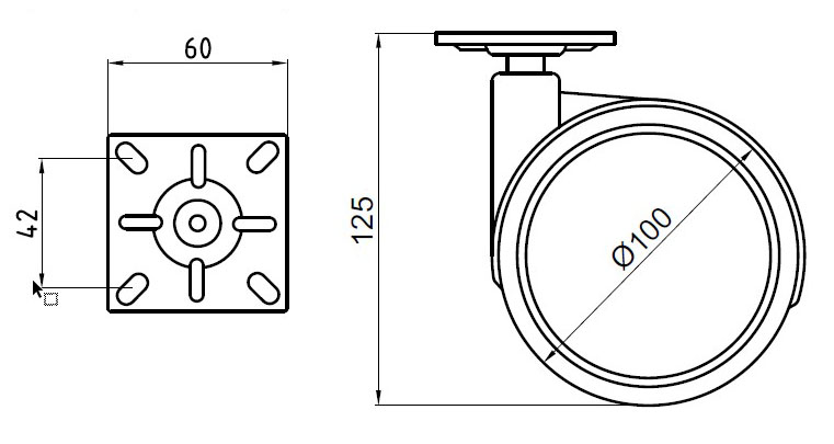 Опора колесная D100 мм с пластиной 60*60 мм Sirio арт.1180.102M.96