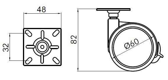 Опора колесная с тормозом D60 мм с пластиной 48*48 мм Sirio арт.1181.062A.96