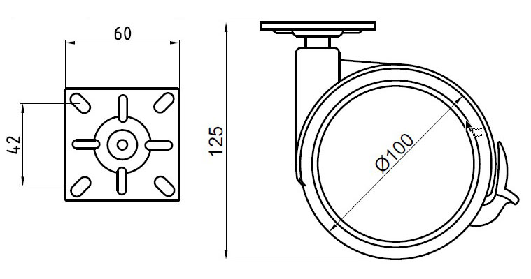 Опора колесная с тормозом D100 мм с пластиной 60*60 мм Sirio арт.1181.102M.96