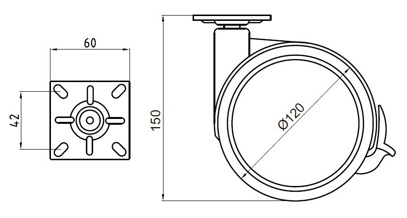 Опора колесная с тормозом D120 мм с пластиной 60*60 мм Sirio арт.1181.122M.96