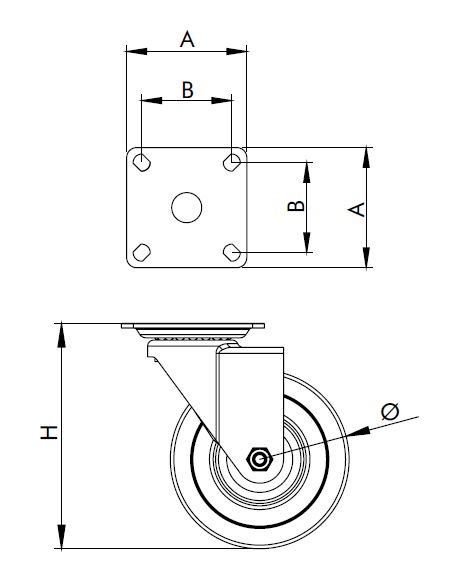 Опора колесная D75 мм с пластиной 65*65 мм арт.1856.0720.40