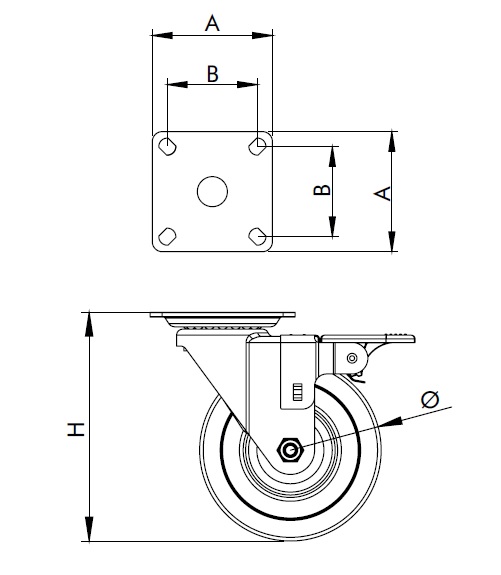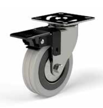 Опора колесная с тормозом, поворотная, колесо резиновое