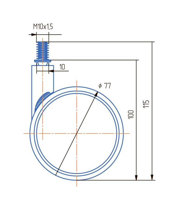 Опора колесная ОК 80 мм метал. штырь м/х (ОКМ81М.Х)