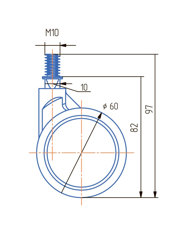 Опора колесная ОК60мм со штыр,м/х(ОКМ61М.Х)