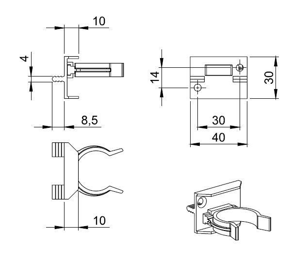 Клипса пластиковая к опоре мебельной арт.423.20UT.03