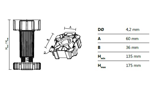 Ножка-опора регулируемая 135 мм Kum-Plast арт.424150