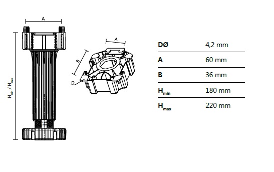 Ножка-опора регулируемая 180 мм Kum-Plast арт.424200