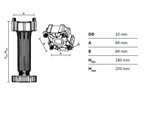 Ножка-опора регулируемая 180 мм Kum-Plast арт.434200