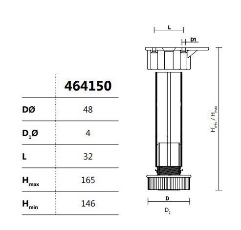 Ножка-опора регулируемая 146 мм Kum-Plast арт.464150