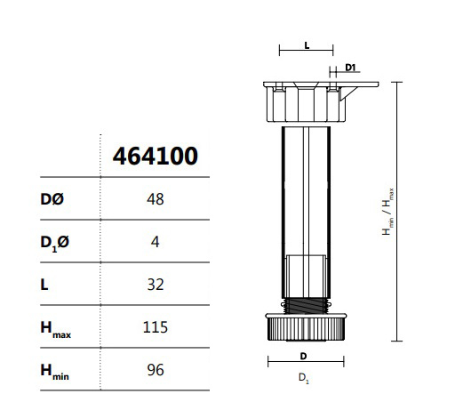Ножка-опора регулируемая 96 мм Kum-Plast арт.464100