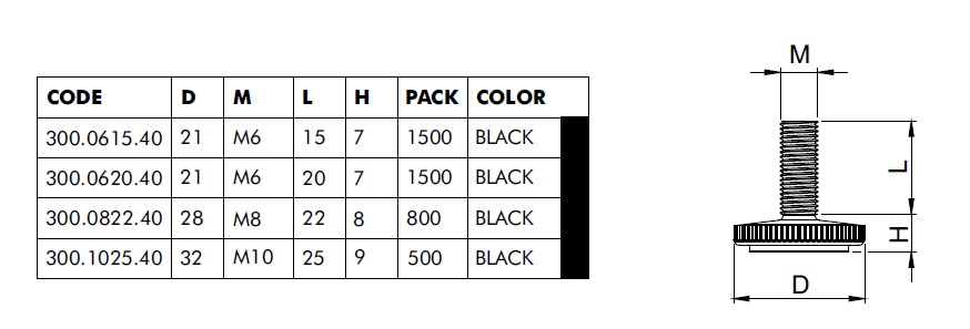 Опора регулируемая М10 х 25 арт.300.1025.40