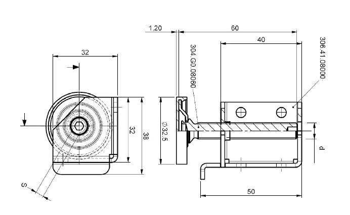 Опора регулируемая правая M8X60 арт.3064308060